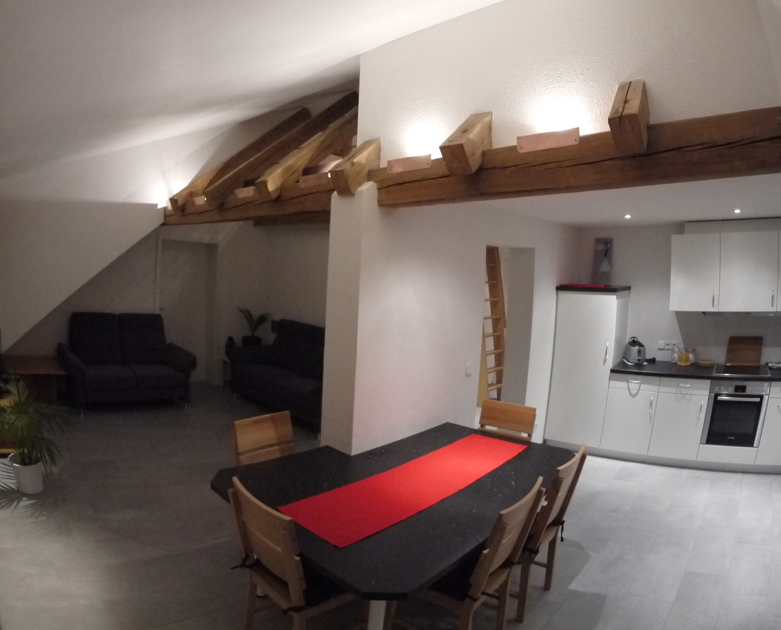 Unsere im Frühjahr 2015 fertig gestellte Maisonette-Wohnung "Wanderfalke" ist mit 73 m² für bis zu 5 Personen sehr geräumig. Die Wohnung ist hell, freundlich, stilvoll und hochwertig eingerichtet. Sie besteht aus: